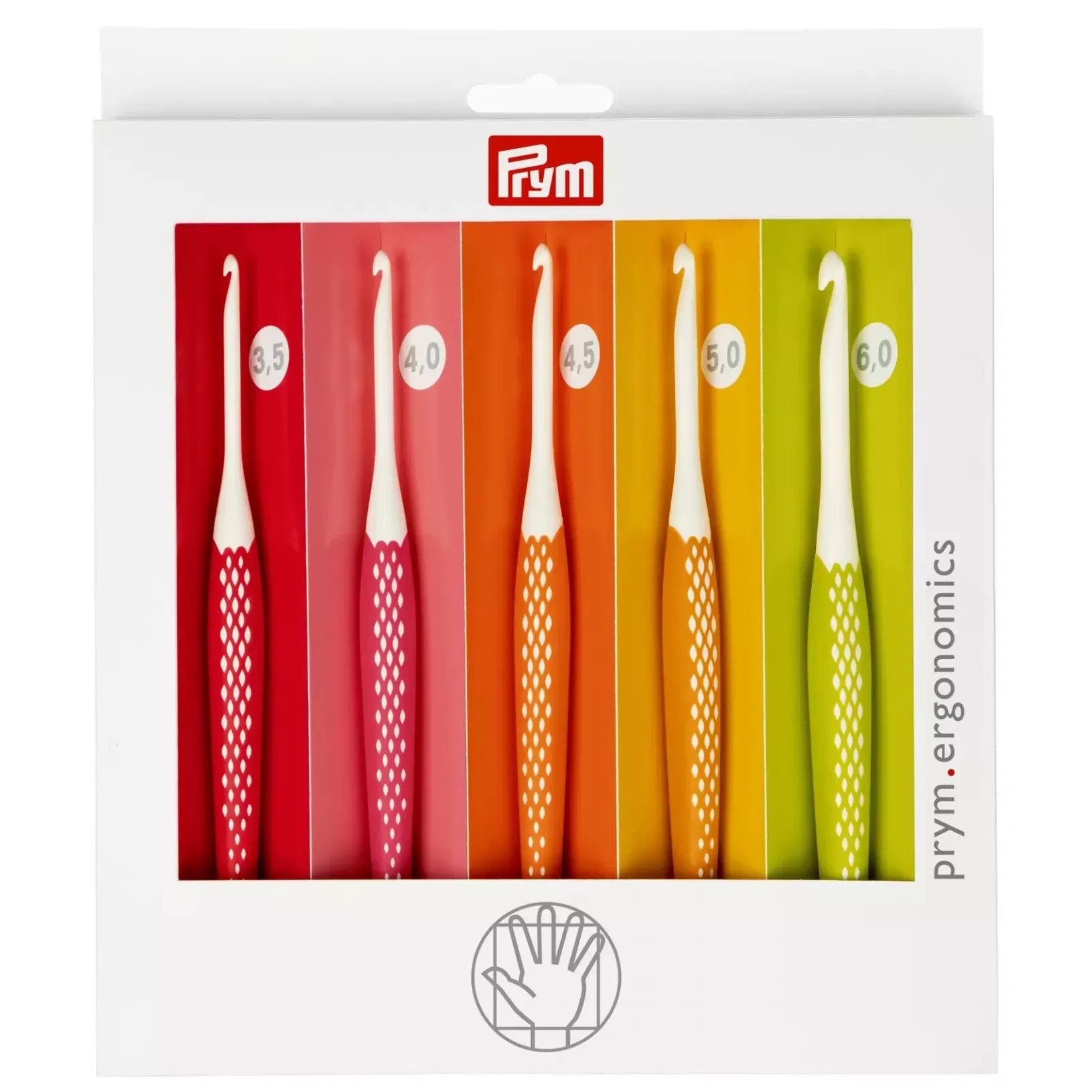 Подарите радость – и сделайте это стильно! Набор крючков для вязания пряжей prym.ergonomics – идеальный выбор. Он содержит пять высококачественных крючков размером 3,5 мм, 4,0 мм, 4,5 мм, 5,0 мм и 6,0 мм. Крючки лёгкие и приятно тёплые на ощупь, а специальный лёгкий пластик обеспечивает лёгкое и бережное вязание. Длинный гладкий стержень и оптимизированная форма крючка позволяют петлям легко скользить, а эргономичная ручка из нескользящего пластика гарантирует вязание без усталости. Ручка имеет цветовую маркировку, соответствующую размеру крючка, что позволяет легко найти нужный крючок в вашей корзине для рукоделия. Благодаря упаковке, подобранной по цвету, этот набор понравится вязальщицам всех возрастов.