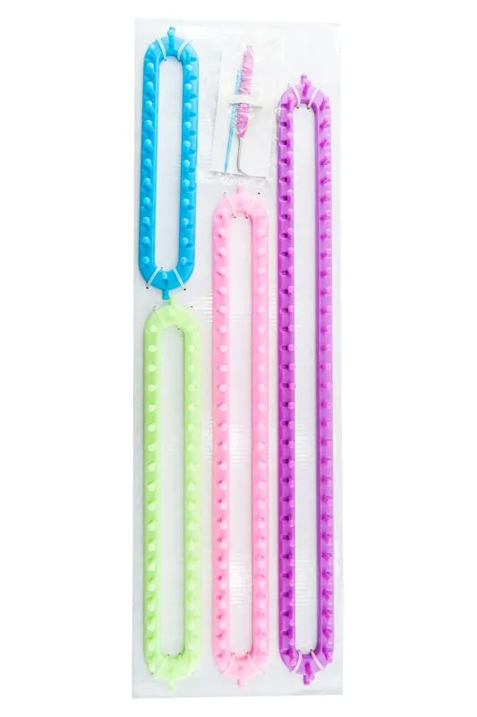 Устройство для вязания (арт. T1942) — набор для рукоделия, включающий четыре устройства разного размера, крючок для захвата нити и иглу для вязания.. Отличается лёгким весом и нескользящей текстурированной поверхностью, обеспечивающей удобный захват и отсутствие усталости даже при долгой работе. Прочные материалы гарантируют долгий срок службы. Подходит как начинающим, так и опытным рукодельницам для создания носков, шарфов, пончо, сумок, ковриков, элементов пэчворка и других изделий.