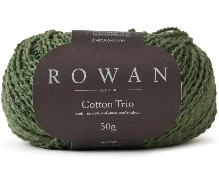 Cotton Trio — это роскошная и универсальная пряжа, в которой натуральные волокна (84% хлопка, 8% шерсти и 8% альпаки) сочетаются для создания мягкой и лёгкой текстуры. Сочетание хлопка, шерсти и альпаки не только придаёт пряже удивительную мягкость, но и делает её более прочной и фактурной, а структура нитей обеспечивает гладкую, слегка матовую поверхность. Cotton Trio имеет лёгкий двухцветный эффект из-за сочетания волокон, а палитра включает в себя приглушённые пастельные, нейтральные и насыщенные яркие тона.