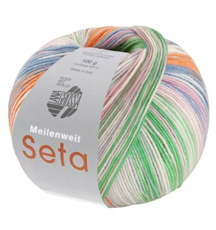 Пряжа «MEILENWEIT 100 SETA ASIA» — приятная на ощупь, упругая нить, которая хорошо скручена и не распадается при вязании. Она отлично держит форму, в том числе разные виды резинок. Если вязать плотно спицами до 2 мм, изделия не будут растягиваться и покрываться катышками.