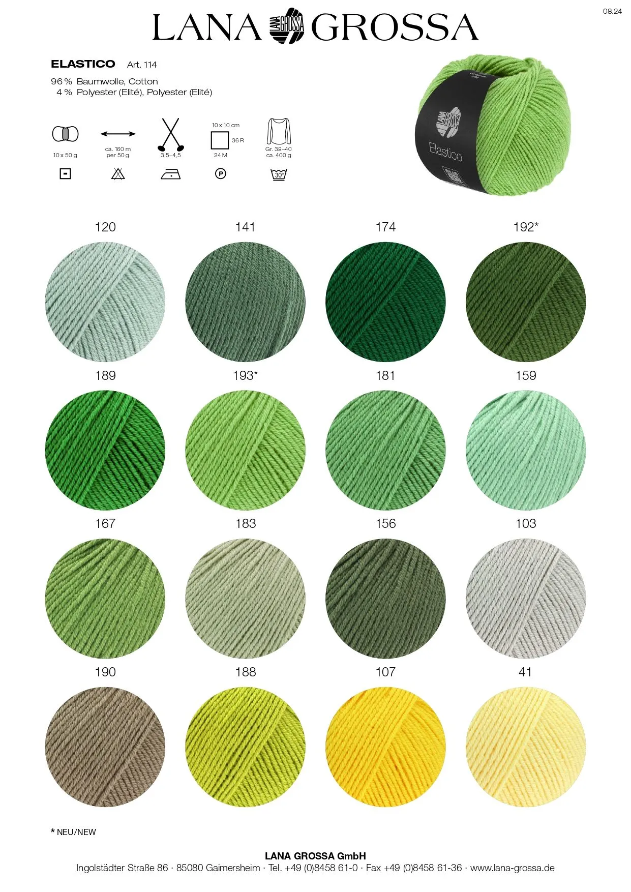 Пряжа Elastico от Lana Grossa — идеальный выбор для тех, кто ценит комфорт и эластичность в вязаных изделиях. Изготовленная из 96% хлопка с добавлением 4% эластичного полиэстера, она обеспечивает мягкость, удобство и лёгкость в уходе. В одном мотке весом 50 граммов содержится около 160 метров нити, что делает её удобной для вязания. Рекомендуемый размер спиц — от 3,5 до 4,5, подходит для большинства техник. Эта пряжа универсальна: она подходит для создания кардиганов, свитеров, топов и других модных изделий, позволяя воплощать разнообразные узоры. Благодаря своей практичности, Elastico от Lana Grossa станет отличным выбором для вязания как взрослых, так и детских вещей.