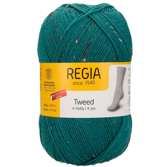 Для пары носков до 46 размера вам понадобится 100 граммов (два клубка) пряжи Regia Tweed в четыре нити. Изделия из этой пряжи рекомендуется стирать в машинке при температуре до 40°C.