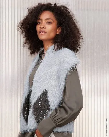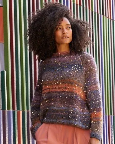Богатая палитра из 22 оттенков открывает безграничные возможности для творчества: каждый цвет по‑своему уникален и несёт в себе особое сияние. Эта пряжа умеет быть универсальной — она изящно дополняет пушистые и объёмные материалы, привнося в вязаные изделия благородный мерцающий акцент. Пальто, свитера, жилеты или аксессуары с её участием обретают неповторимое очарование.