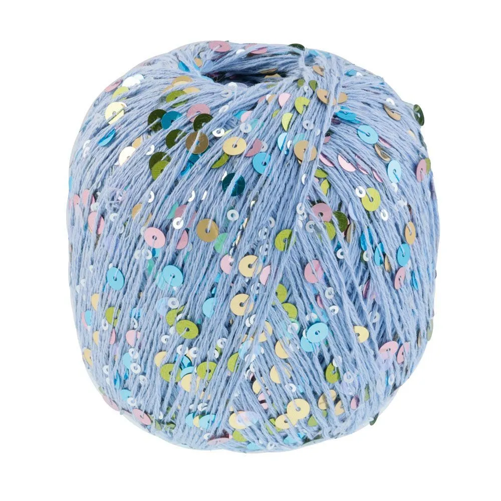 Lana Grossa Cosmo — пряжа, которая переносит в мир космического великолепия. Её очарование кроется в удивительном сочетании мягкости и сияния: нежная хлопковая основа деликатно дополнена пайетками, создающими эффект мерцающих звёзд. То они вторят тону самой нити, то вспыхивают разноцветными искрами — словно далёкие галактики, рассыпанные по ночному небу.