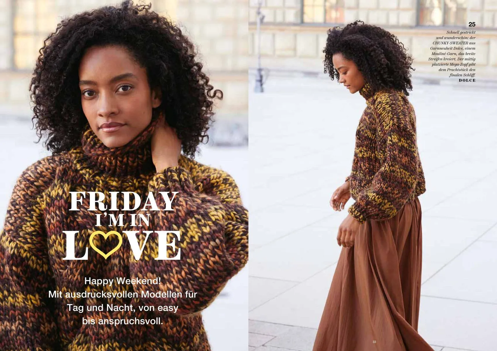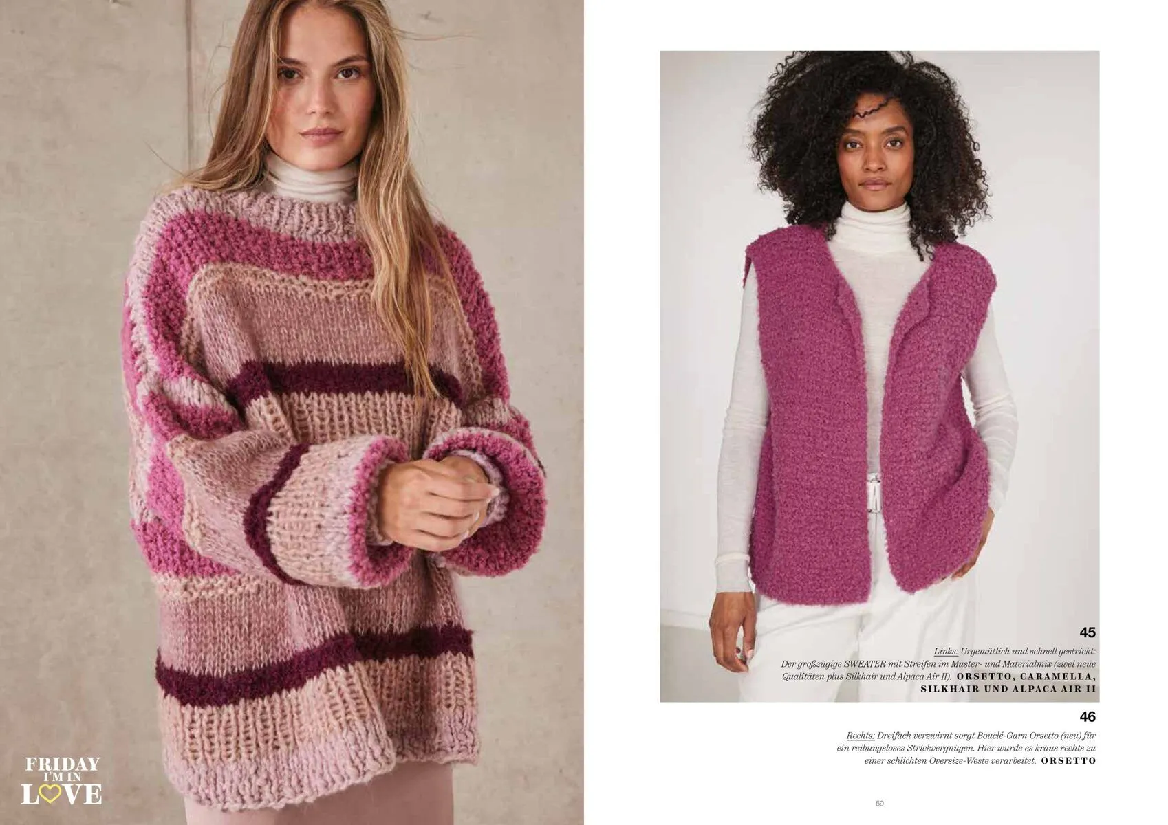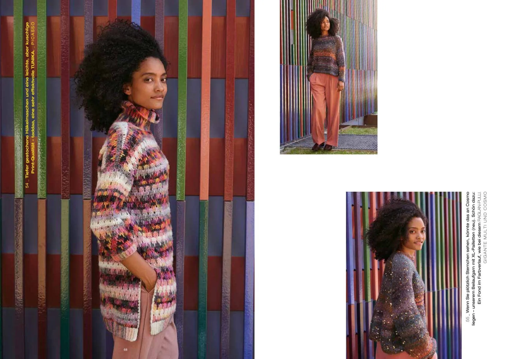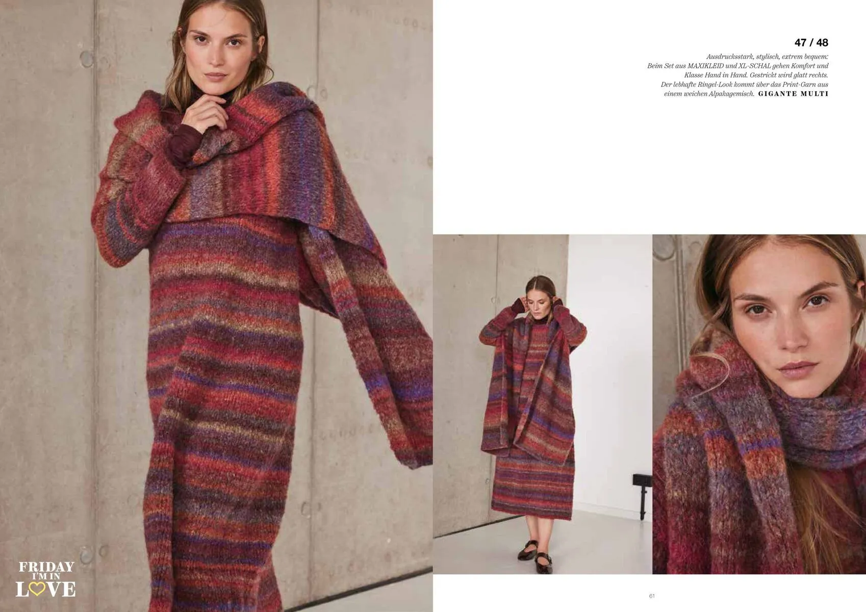 Журнал Lana Grossa Filati № 70 посвящён осенне‑зимнему сезону 2025/26. В выпуске — 56 моделей, в которых акцент сделан на фактуре и цвете: объёмное букле и блестящее мулине создают эффектные градиентные переходы.