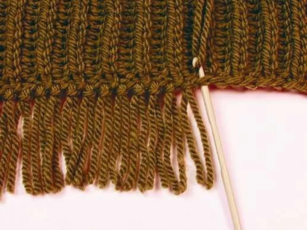 Самый легкий способ сделать бахрому - это завязывать отрезанные нити по краю вашего изделия. Но бахрому можно еще и вязать, так ваша вязанная вещь будет выглядеть аккуратнее и не распушится.