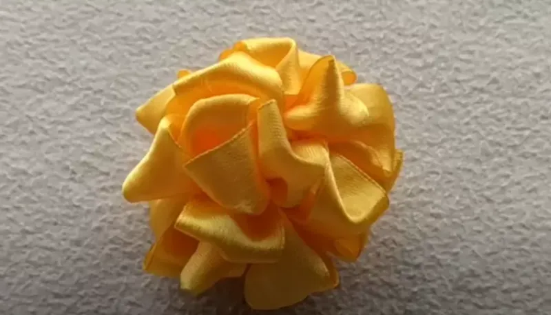 4. Сверните бант по спирали через узлы, закрепив каждый виток иголкой с ниткой. Закрепите и обрежьте нить. Расправьте каждую складку на бантике.