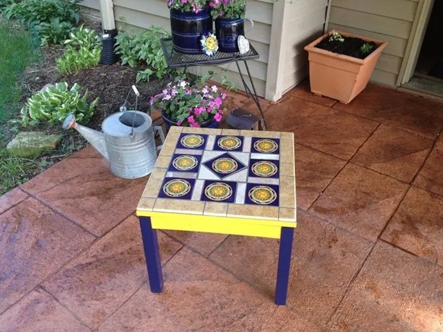 Для уличной мебели на дачу подойдет стол из плитки. Так как плитка весьма устойчива к сырости, перепадам температуры, не теряет свой цвет и удобна в уборке.