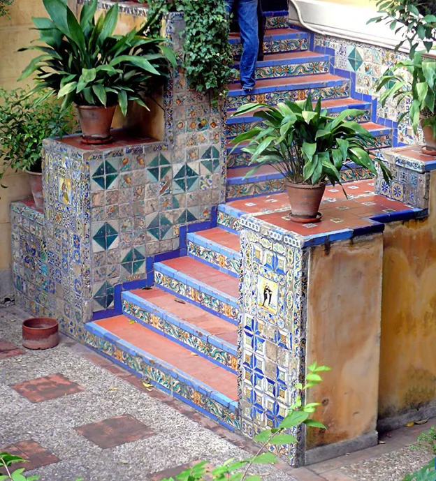 Если вы хотите обновить старые ступеньки на даче, вам в этом деле поможет плитка. Для этого можно использовать старые остатки.