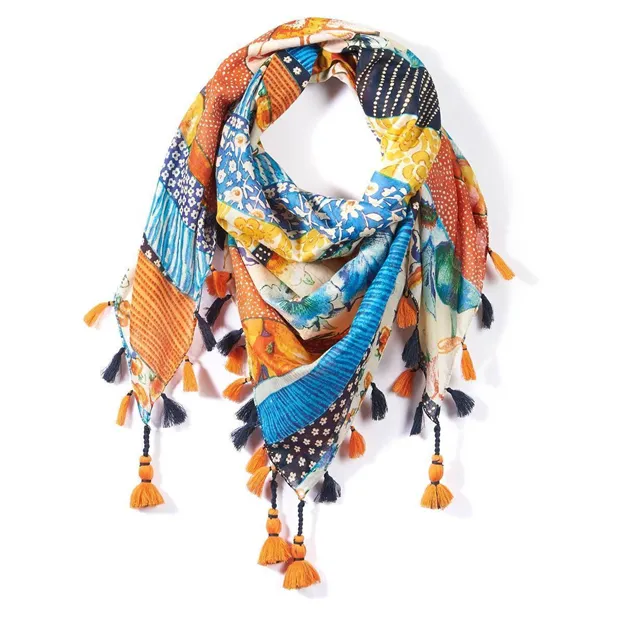 Шейный платок можно сшить из нескольких лоскутков разных тканей.
