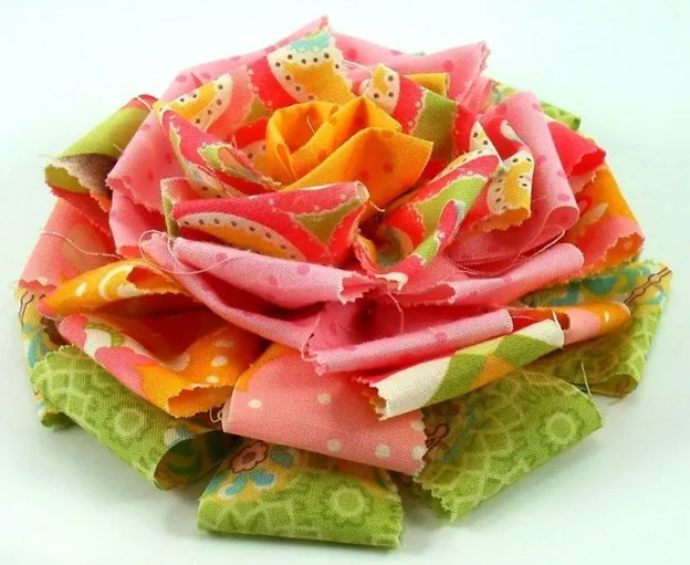 Лоскутки ткани можно взять для создания различных цветов, которые потом можно использовать в качестве броши или декора дома.
