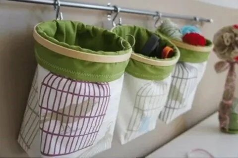 4. Мешок для мелочей из пялец. В такой мешочек можно складывать все, что угодно: ножницы, зарядку, карандаши, нитки, очень удобно доставать из него, потому что он открытый. Текстильный мешочек можно купить или сшить самим.