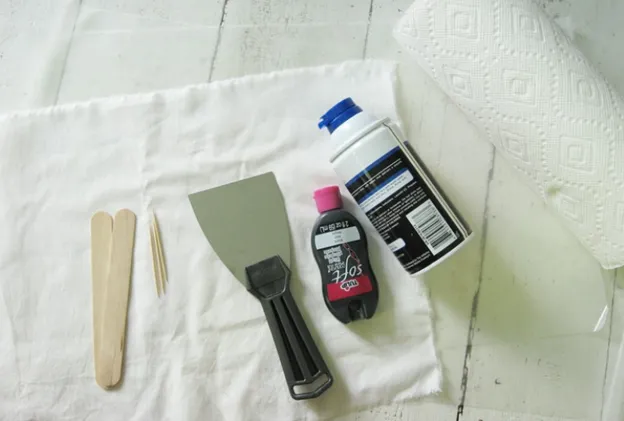 8. Покройте окрашенную пленку лоскутком ткани, прижмите ее к поверхности. Сначала это делайте легкими постукивающими движениями, чтобы пена не вылезла, а потом, как только ткань прижмется, подключайте поглаживающие движения.