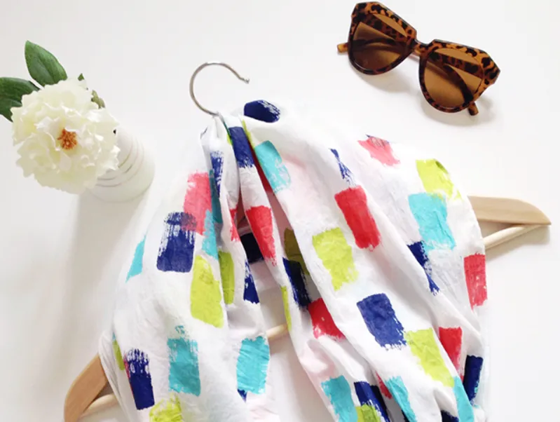4. Оставьте шарф до полного высыхания. Далее, если этого требует краска, закрепите ее утюгом с изнанки. Готово!