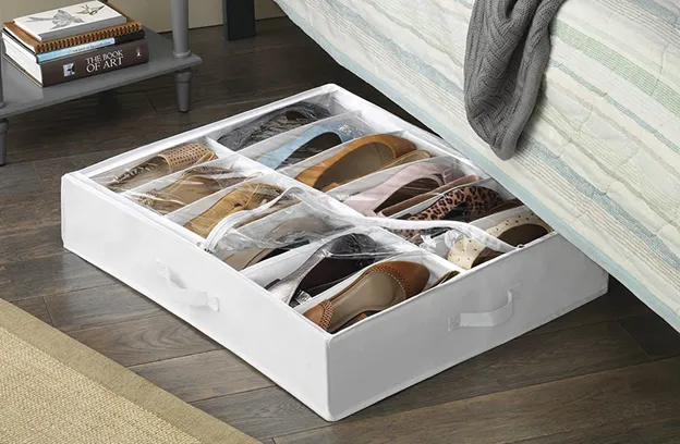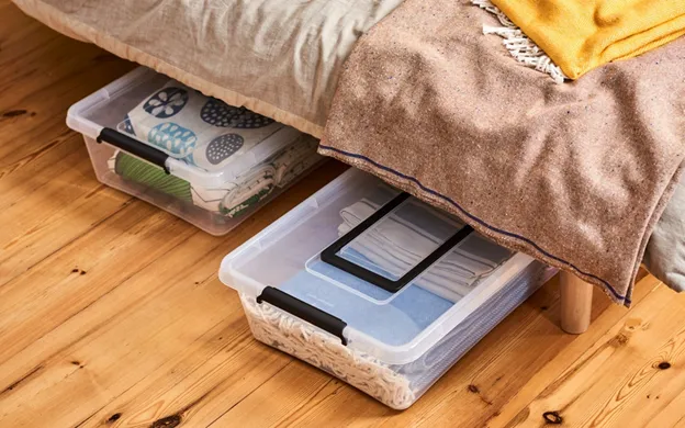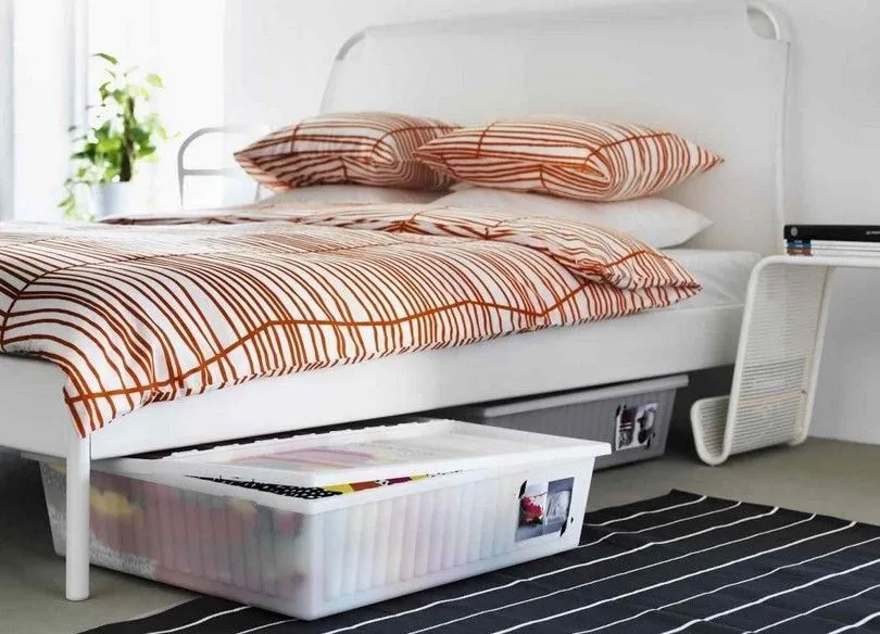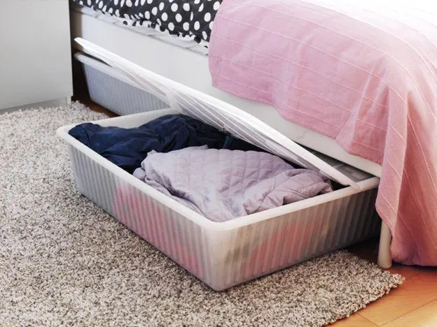 Под кроватью скапливается довольно много грязи и пыли, поэтому органайзеры и коробки для хранения стоит подбирать с крышками. Так пыль не попадет на вещи, которые вы будете в них хранить.