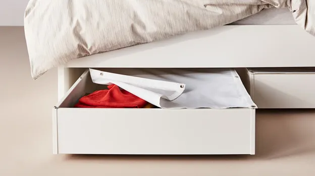 Все ящики и органайзеры, которые вы будете хранить под кроватью, должны удобно доставаться. Для этого лучше приобретать системы для хранения с колесиками или ручками, с помощью которых их можно будет легко выдвигать из-под кровати.