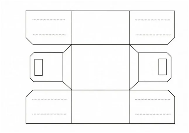 3. Загните боковые края и сложите короб так, чтобы продеть ручки в прорези.