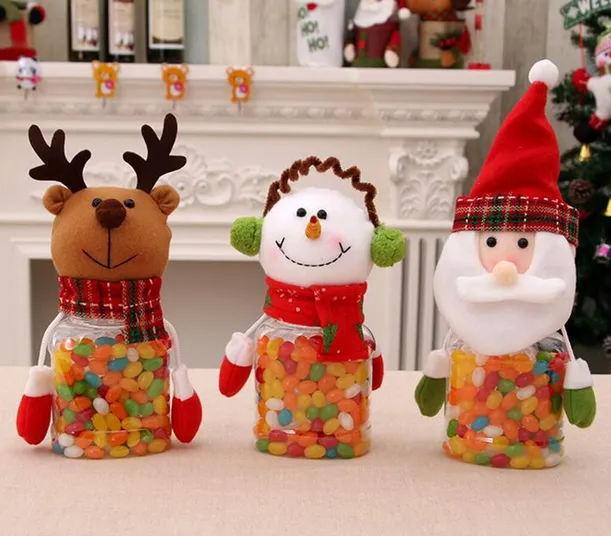 - Прикрутите крышку с получившейся головой к банке, между банкой и крышкой намотайте белую мишуру, у вас получится красивый шарфик.