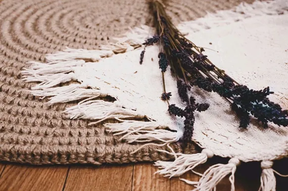 - Теперь необходимо выбрать нить, из которой вы будете делать коврик: джут или хлопчатобумажная веревка. Эти материалы натуральные и безопасные. Если же вы хотите сделать коврик для прихожей, то лучше выбирать синтетическую нить, коврик из такой нити будет более износостойким и хорошо мыться.