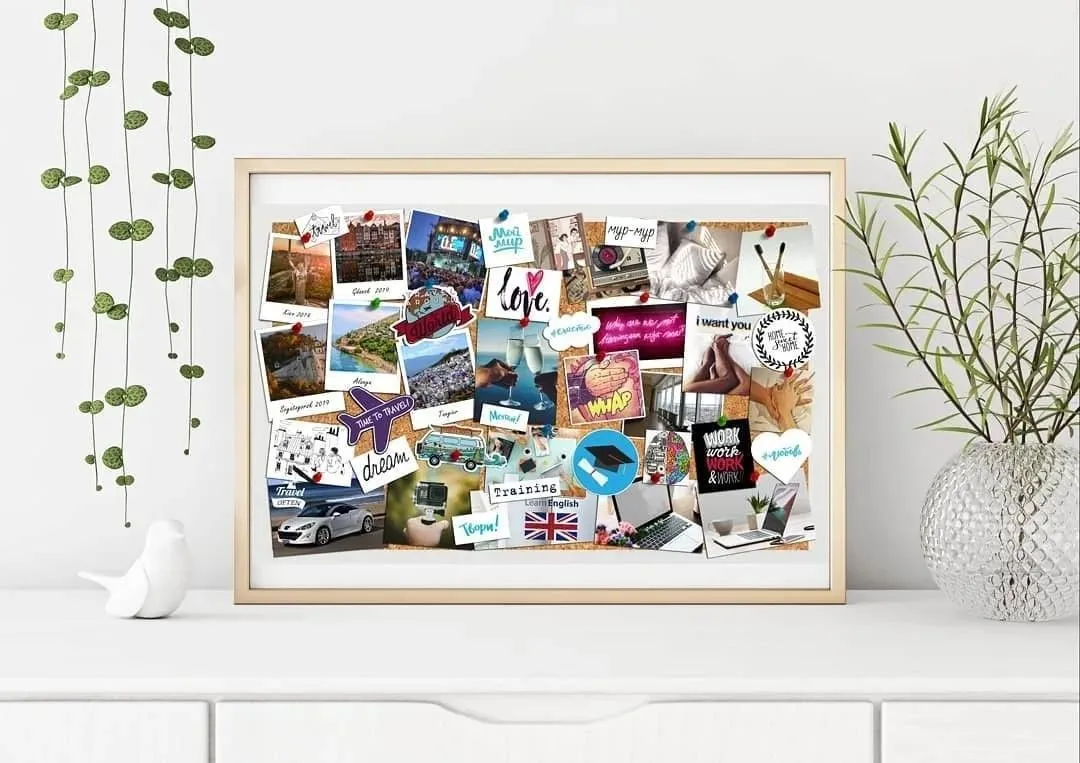 Доска желаний - это не только польза для воплощения ваших целей, но и отличное украшение для комнаты. Еще ее называют доска визуализации. Для ее создания вам понадобится пробковая доска или лист ватмана. Пробковая доска удобнее, потому что на нее можно крепить рисунки или фотографии с помощью кнопок, и если желание исполнилось, фотографии можно заменить на новые. На ватман рисунки и фотографии крепятся клеем.