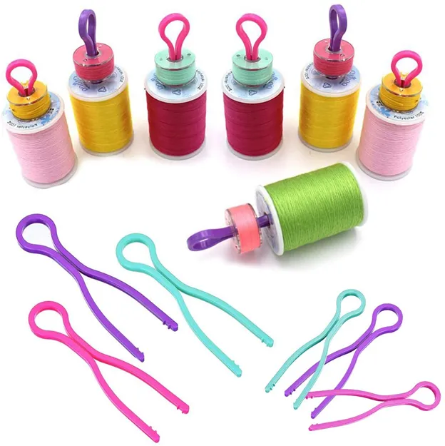 Такие держатели помогают держать вместе и катушки и шпульки, что очень удобно при шитье.
