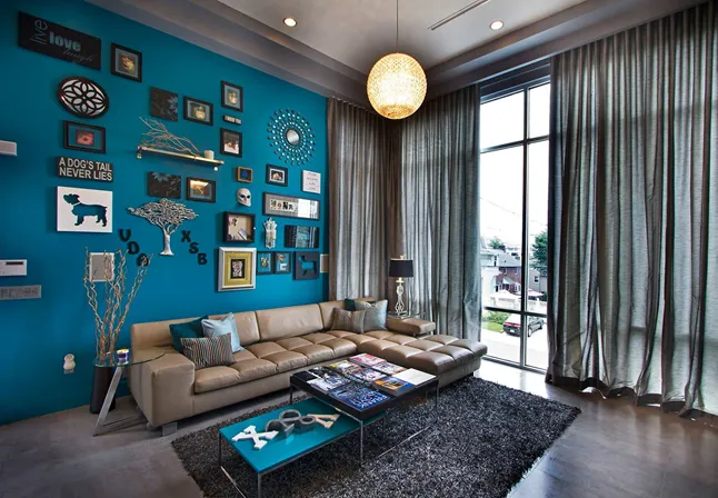 Синий цвет в интерьере способствует расслаблению, его оттенки успокаивают, настраивают на неторопливый лад, умиротворенность. Глядя на оттенки синего человек отбрасывает негатив, и оставляет суету и тревогу во внешнем мире, как бы погружаясь в свежесть и прохладу.