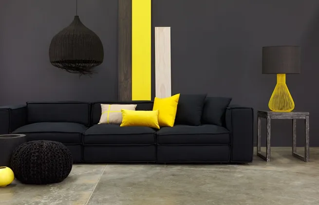 Такой цвет можно использовать только в больших помещениях, так как он визуально приближает предметы. Черный цвет отлично сочетается с желтыми оттенками.