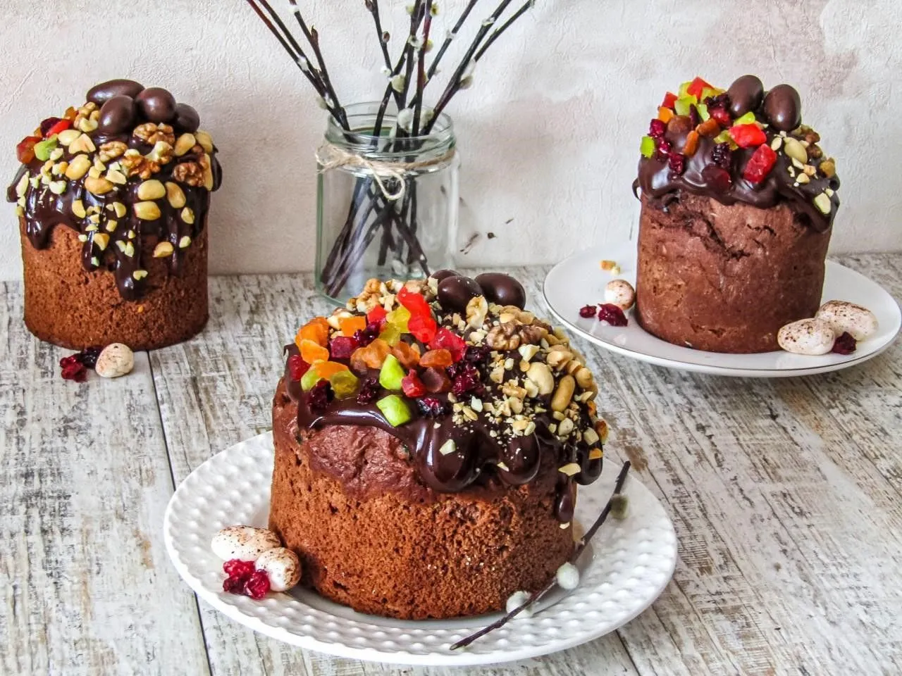 Еще один способ украшения кулича тоже глазурь, но уже не белая, а шоколадная, да это очень необычно, но не менее вкусно и оригинально, шоколадная глазурь придает невероятный вкус куличу, и ваш кулич будет походить на целый торт. Когда вы сварите шоколад, его лучше поливать на кулич тогда, когда он чуть остынет, и дождаться, когда глазурь застынет полностью. Любители шоколада оценят такое украшение кулича.