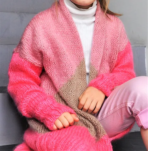Мы предлагаем связать такой кардиган из мохера, он получится очень легким и мягким, на ощупь и к телу он очень приятен. Такой кардиган можно связать и детям, ведь девочки тоже хотят быть такими же модницами, как и их мамы. Кардиган можно дополнить пуговицами или брошью, а можно просто носить нараспашку.