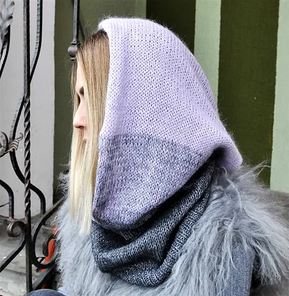 Актуальным изделием для поздней осени или зимы, когда уже наступают морозы, будет капор, он очень удобен и функционален. Изюминкой такого изделия является то, что когда вы заходите в помещение, его легко можно скинуть с головы, и не нужно носить в руках, у вас получиться великолепный воротник или шарф. Такой капор можно связать по самой простой схеме вязки, особенно его можно оживить градиентом. Смотрится очень элегантно и нескучно.