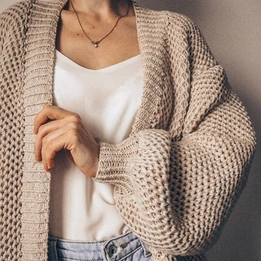 Лето подходит к концу и незаметно подбирается осень, вечерами становится уже прохладно. Поэтому сегодня мы предлагаем вам связать кардиган, который будет незаменим для вечерних прогулок или ранней осенью. Он легко вяжется на спицах и не требует каких-то особых умений. Сам кардиган будет плотным, толстым, с эффектом крупной вязки.