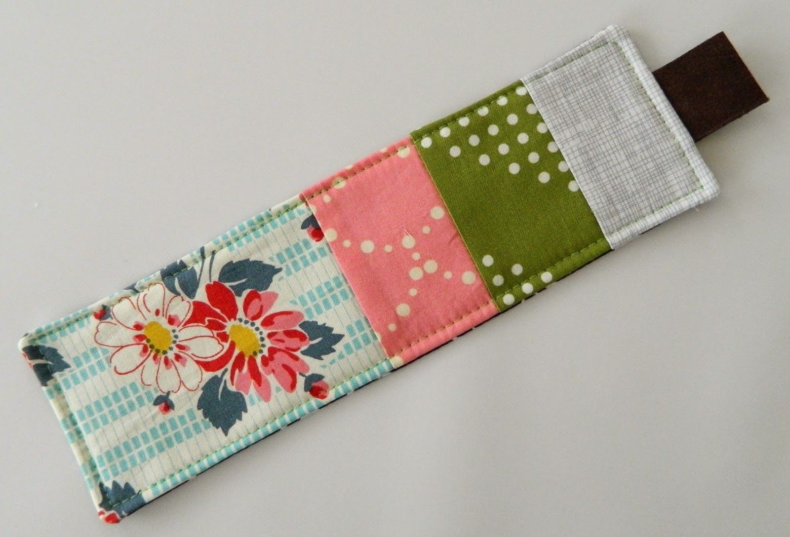 3. Лоскутков нужно взять столько, чтобы они покрыли полностью одну сторону закладки, вторую сторону мы будем делать из цельной ткани.