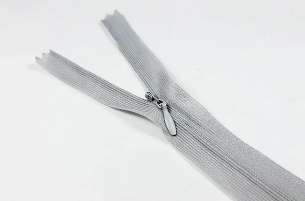 Потайная молния или по-другому скрытая практически невидна снаружи. Спираль вплотную закручивается к тесьме с обратной стороны молнии. Такая застежка притачивается при помощи специальной лапки на швейной машинке.